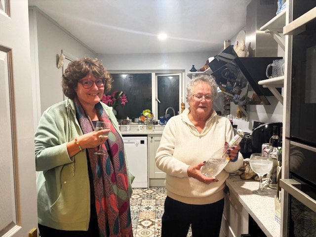 Here is Debbie (on the right) in her kitchen sharing a glass with Andrea Dallmann from Neunkirchen-Seelscheid.